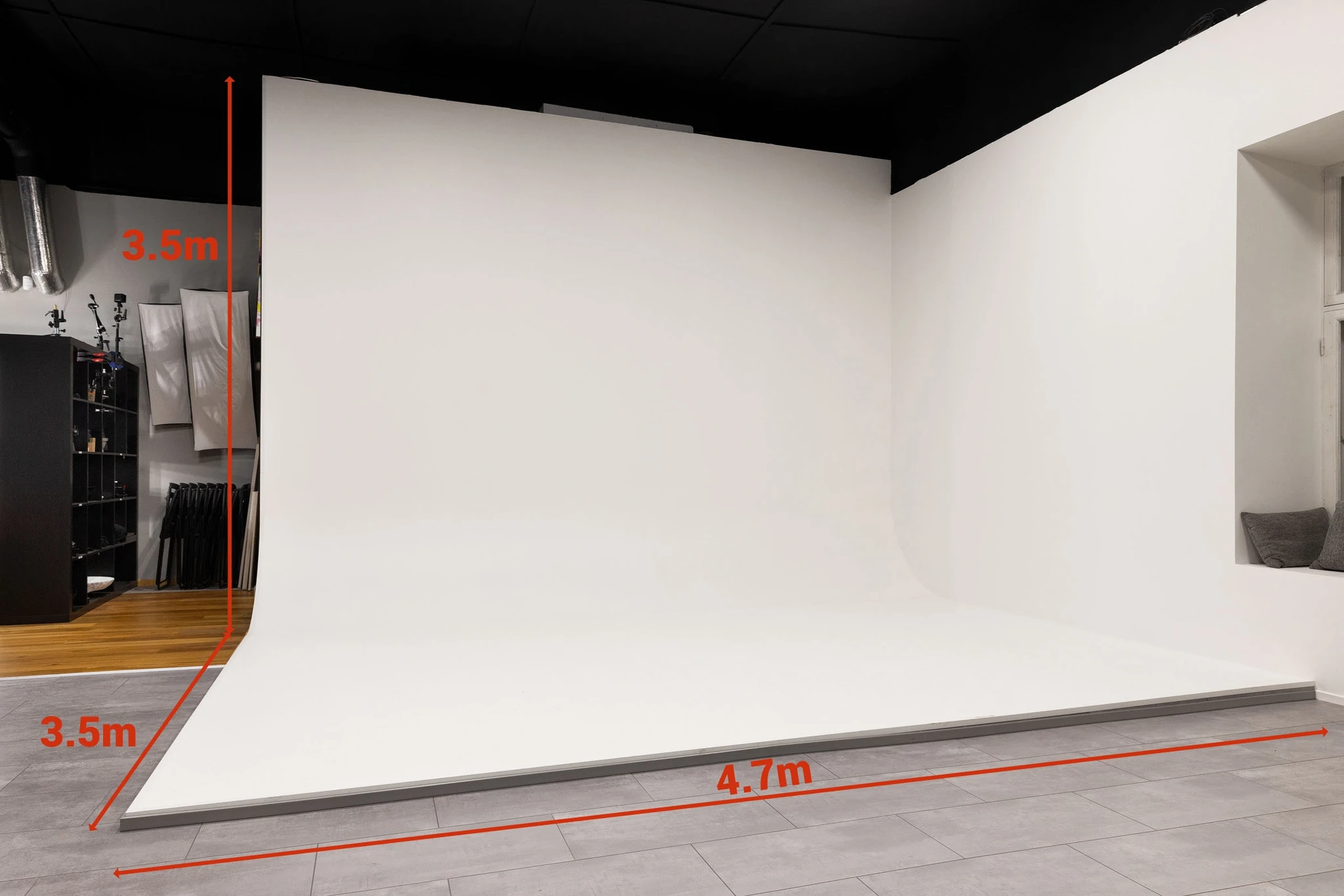 Stuudio on 1 korrusel (estakaad), pind 90m2, laed 4m